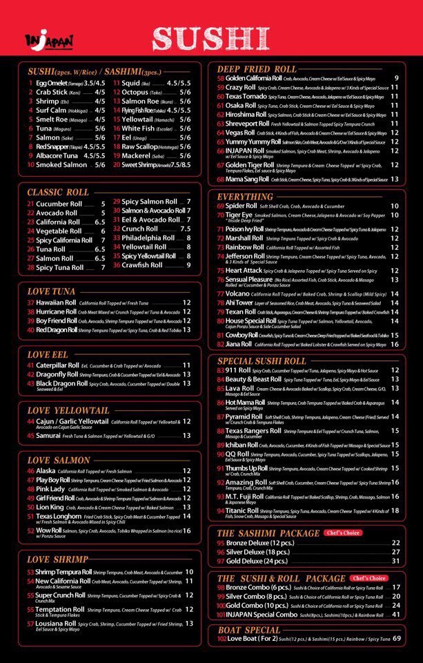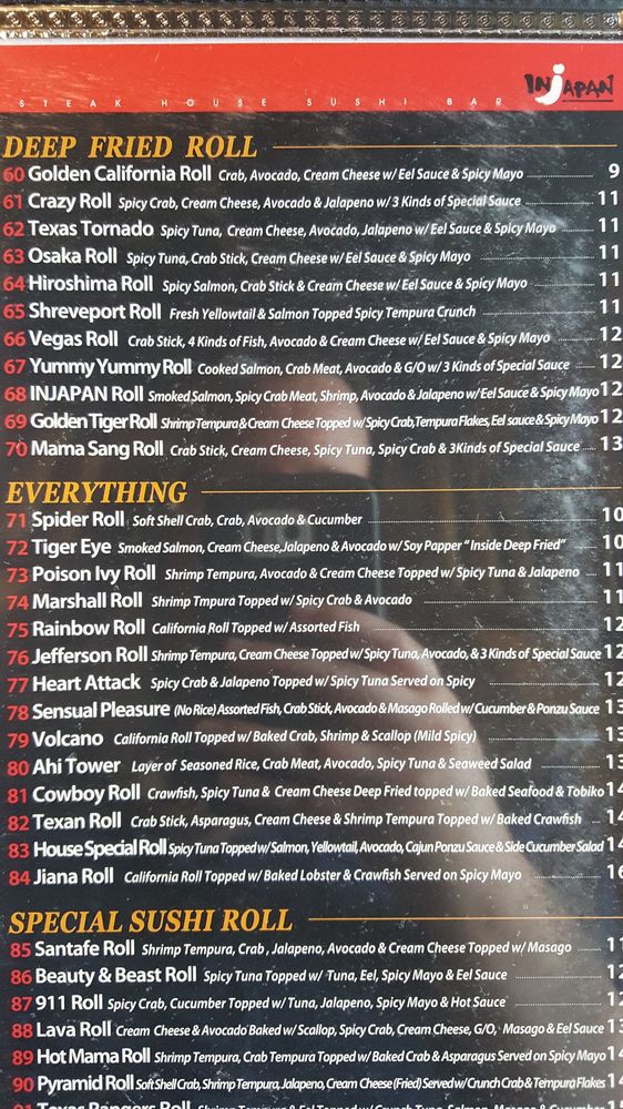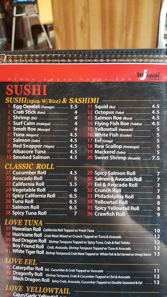Introducing In Japan, a unique dining experience located in Marshall, TX. This restaurant offers a fusion of steakhouses, sushi bars, and traditional Japanese cuisine. With a wide range of options including vegetarian dishes, it caters to all preferences. The casual atmosphere is perfect for groups and families, with amenities such as Wi-Fi and outdoor seating. The menu boasts a variety of delicious dishes, from perfectly grilled steaks to fresh sushi rolls. The attention to detail in each dish truly sets In Japan apart. Whether you're craving a hearty steak or delicate sushi, this restaurant has something for everyone. Don't miss out on the opportunity to dine at In Japan and experience the best of Japanese cuisine in Texas.